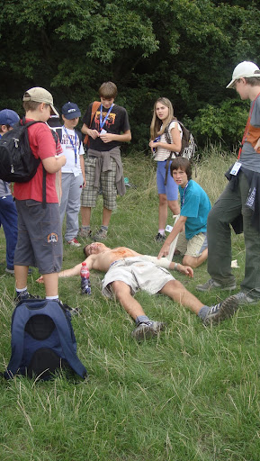 Po obědě jsme dostali od informátorů zprávu, že naše plukovníky, unesla konkurenční agentura. Jediná informace, kterou jsme věděli bylo to, že míří za město. Proto jsme se je vydali hledat. Toto pátrání nás dovedlo až k hoře Bořeň. Po dlouhém stoupání podle šipek, které zkušeně umístili naši plukovníci , jsme dostali první úkol a to vyzkoušet si přenos zraněného. Nedaleko odtud nás čekal další úkol. Test z první pomoci. Po té jsme šli dál. Poslední test také nebyl daleko. Utvořili jsme řadu a měli jsme odpovídat na otázky o lidech za námi např. Jaké má Filip kalhoty? Po další dlouhé cestě nahoru, jsme uslyšeli volání o pomoc. Proto jsme se vydali za hlasem. Hlas nás dovedl na louku, na které leželi naši těžce zranění plukovníci. Proto jsme jim ihned poskytli první pomoc. Když byl náš tým kompletní, rozhodli jsme se, že půjdeme prozkoumat vrchol. Výhled byl opravdu nádherný. Bohužel tam bylo opravdu hodně mušek. Dále nás čekal už jen sestup z hory. Cesta dolu rychle utíkala, díky debatě o TEKKENOVI 5. Po příchodu nás čekal táborák, tudíž byli k večeři buřty. Protože jsme přišli pozdě a všichni byli unavení, tak nás šlo psát blogy jenom pár. S tím se s vámi loučí Vaše JABKO Times.